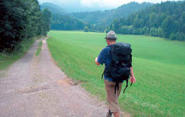 So auch in diesem Juli. Bereits kurz nach unserem Ausgangsort Heiligenkreuz führt der Weg, vorbei am geschichtsträchtigen Mayerling, nur mehr durch satte Wiesen, kleine verschlafene Ortschaften und weite Täler. Vergessen die Nähe zur Großstadt Wien, vergessen nach wenigen Schritten auch Büro, Sitzungen, Stress. Noch ist es allerdings zu früh für Spiritualität oder gar Gebet. Zunächst tauschen wir uns aus, erzählen von unseren Familien, vom Beruf, plaudern so intensiv, wie es enge Freunde tun, die sich nur noch selten sehen.